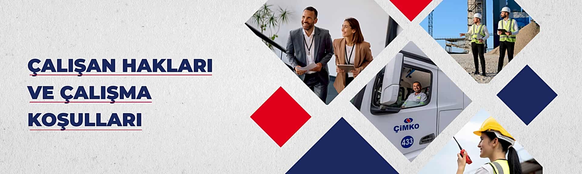 Çimko Çimento ve Beton A.Ş. olarak, çalışanlarımızı en değerli sermayemiz olarak görüyoruz. İnsan kaynağımızın motivasyonu, sağlığı ve mutluluğu; sürdürülebilir başarımızın temelini oluşturur. Bu anlayışla tüm çalışanlarımıza adil, güvenli ve saygılı bir çalışma ortamı sunmayı taahhüt ediyoruz.