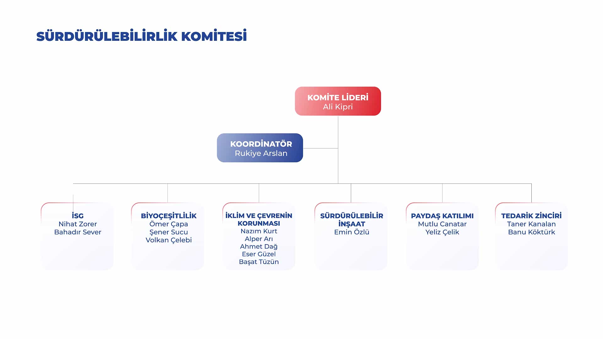 Sürdürülebilirlik Komitemize, aynı zamanda İcra Kurulu üyesi olan Teknik Genel Müdür Yardımcımız başkanlık ediyor. Bu yapı, sürdürülebilirlik hedeflerimizin üst yönetim düzeyinde sahiplenilmesini ve karar alma süreçlerimize etkin biçimde entegre edilmesini sağlıyor.